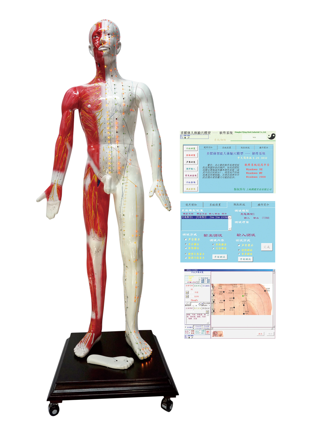 多媒體人體針灸穴位發(fā)光模型... 該系統(tǒng)融計算機技術、電子控制技術、多媒體技術、腧穴理論于一體;聲音、屏幕、人體模型同步控制筋絡腧穴的信息;顯示十二經脈循環(huán)流注,經脈絡屬表理對經關系,特定穴的分布;加之屏幕表層、淺層、深層穴位解剖圖的配合,常見病的辯施治,隨證選穴的查詢及處理輸出,使學員對人體經絡腧穴信息有更全方位的了解,更有利于加深印象與理解掌握;同時,亦可用于臨床與科研參考。